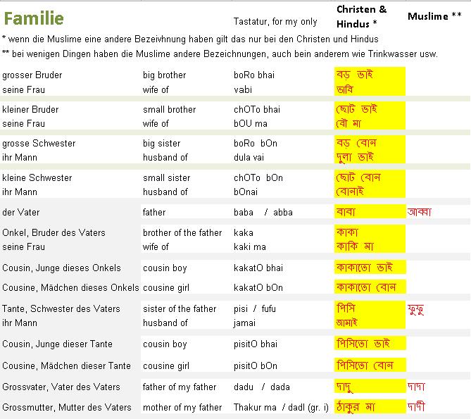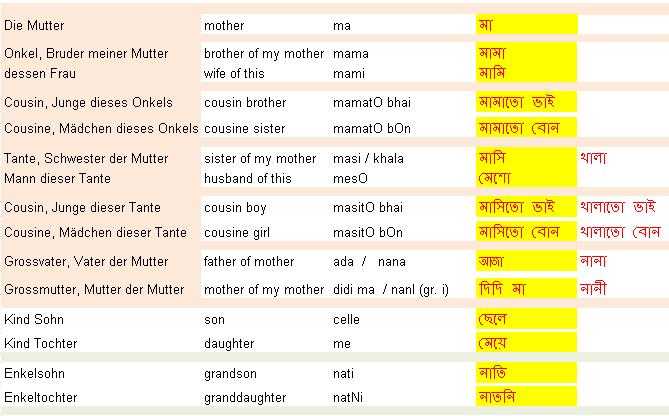 Die Bezeichnungen für Verwandte sind so speziell, dass man genau weiss, von welcher Seite sie herkommen (Da Sie die Schrift eventuell nicht auf dem Computer haben, muss ich dies als Bild darstellen).