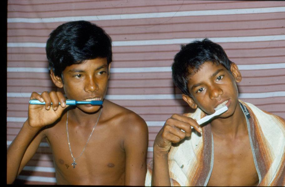 010 – 011 die ältesten zwei Fotos von Susanto, die ich noch habe, Foto Zähne putzen links, Foto 2 rechts